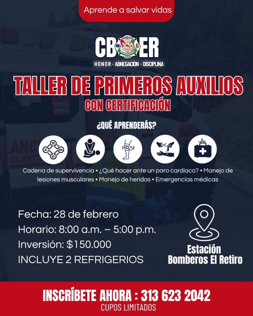 Al finalizar, los participantes reciben certificación interna emitida por el Cuerpo de Bomberos Voluntarios de El Retiro.